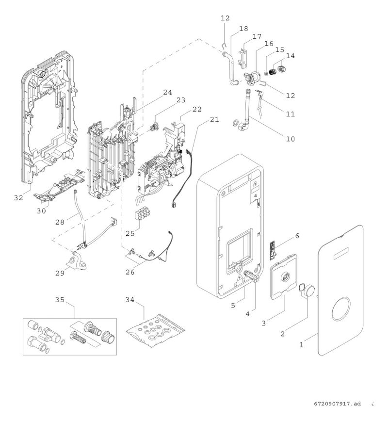 - 1x BOSCH Durchlauferhitzer TR5001 21/24/27 EB, 27kW, 484x236x106