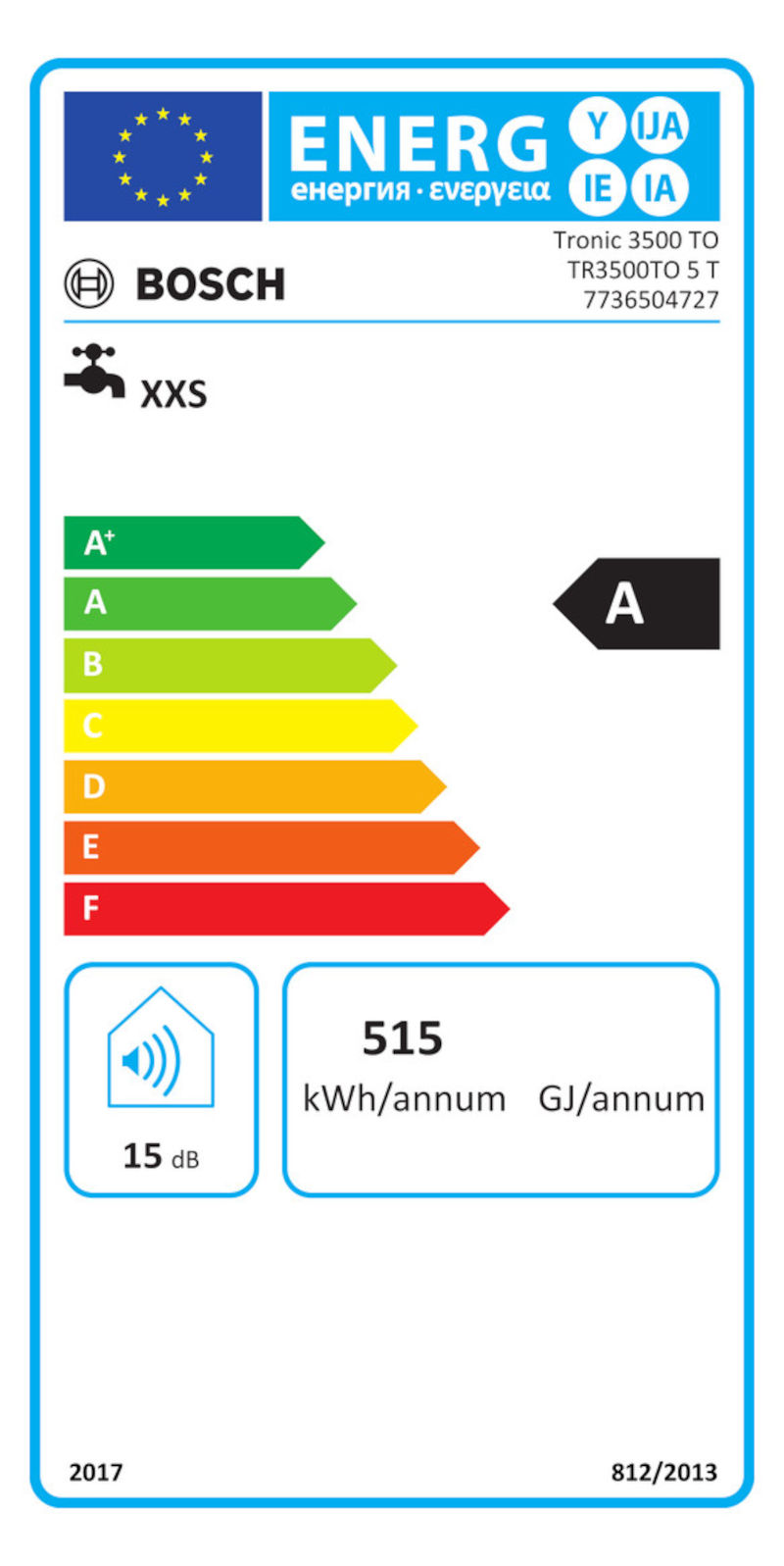 - Klasse für die Warmwasserbereitungs-Energieeffizienz: A