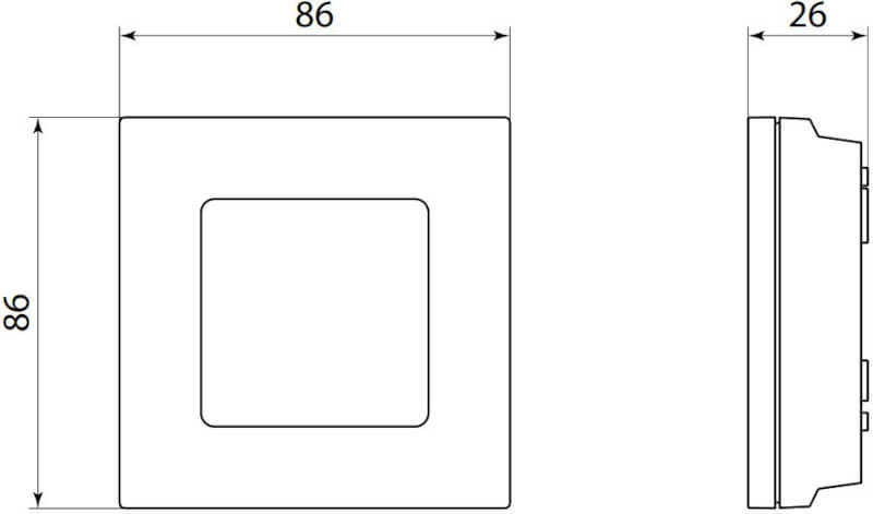 - Abmessungen (H x B x T): 86 x 86 x 26 mm