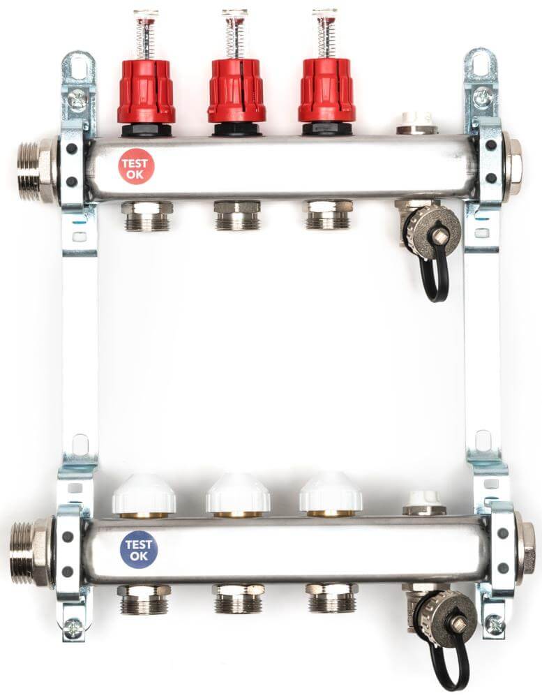 - 1 x Heizkreisverteiler aus Edelstahl für 3 Heizkreise