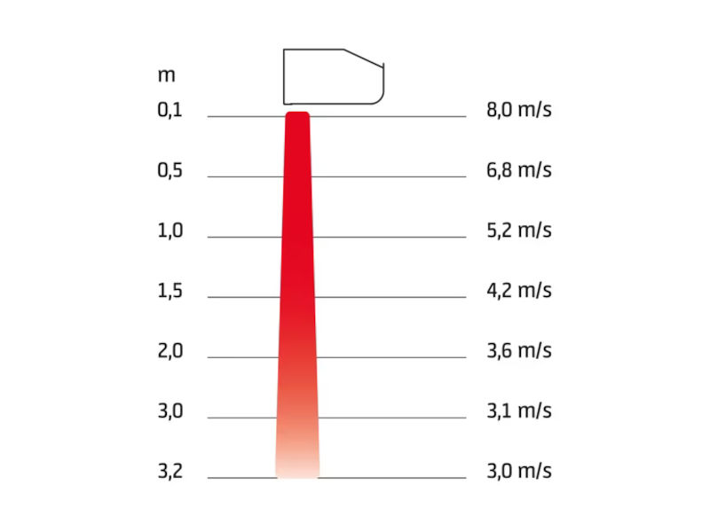 - Temperatursteigung max. Heizleistung, max. Luftmenge 13 °C