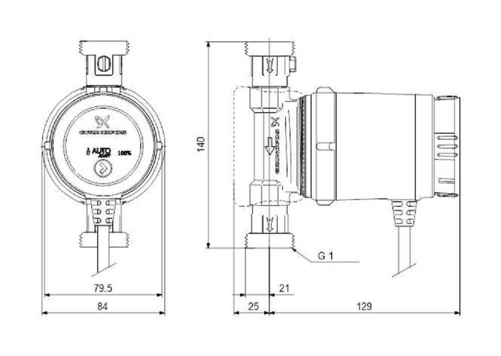 Grundfos ALPHA1 20-45 N, Heizungspumpe, Baulänge 150mm, Gewinde 1 1/4"Produktmerkmale:Energieeffizienz: Die GRUNDFOS ALPHA1 verfügt über einen hocheffizienten Motor, der dabei hilft, den Stromverbrauch zu minimieren und gleichzeitig maximale Leistung zu bieten.Einfache Installation: Dank ihrer kompakten Bauweise und der klaren Kennzeichnung lässt sich die Pumpe leicht in unterschiedlichsten Anwendungen installieren.Robustes Design: Die Pumpe ist für eine lange Lebensdauer konzipiert und ist in der Lage, unter verschiedenen Betriebsbedingungen zuverlässig zu funktionieren.Optimierter Wasserdurchfluss: Die ALPHA1 sorgt für einen stabilen und kontinuierlichen Wasserdurchfluss und bietet damit eine optimale Umwälzleistung.Automatische Steuerung: Mit den integrierten Steuerungsfunktionen kann die Pumpe den Durchfluss automatisch an verschiedene Anforderungen anpassen, um den Komfort und die Effizienz zu maximieren.Anwendungsbereiche: Heizsysteme, Kühlsysteme & Haushaltliche WasseranwendungenTechnische Daten:Werkstoff des Pumpengehäuses: rostfreier StahlWerkstoffgüte des Pumpengehäuses: Edelstahl 304 (1.4301)Volumenstrom (BEP): 1.65 m³/hFörderhöhe bei Volumenstrom (BEP)20.10 kPaMax. Förderhöhe4.50 mMax. Arbeitsdruck10 barAnzahl der Phasen: 1Frequenz: 50 HzNennstrom0.34 AAufgenommene Motorleistung (P1)0.045 kWIsolationsklasse nach IEC: FDrehzahlregelung Motor: eingebautArt der Drehzahlregelung: stufenlosKommunikation: ohneAnschluss Einlassseite: Außengewinde Gas zylindrisch BSPP (ISO 228-1)Durchmesser, Anschluss Einlassseite: 1 1/4 Zoll (32)Druckstufe Flanschanschluss Einlass: PN 10Anschlussstandard Einlassseite: ISO 228-1Anschluss Auslassseite: Außengewinde Gas zylindrisch BSPP (ISO 228-1)Nenndurchmesser, Anschluss Auslassseite: 1 1/4 Zoll (32)Druckstufe Flanschanschluss Auslassseite: PN 10Anschlussstandard Auslassseite: ISO 228-1Einbaulänge: 150.00 mmSchutzart (IP): IP42Lieferumfang:1x GRUNDFOS ALPHA1 20-45 N 150, 230V G1_1/4 DACH› Download: Betriebsanleitung ALPHA1› Download: Datenheft ALPHA1