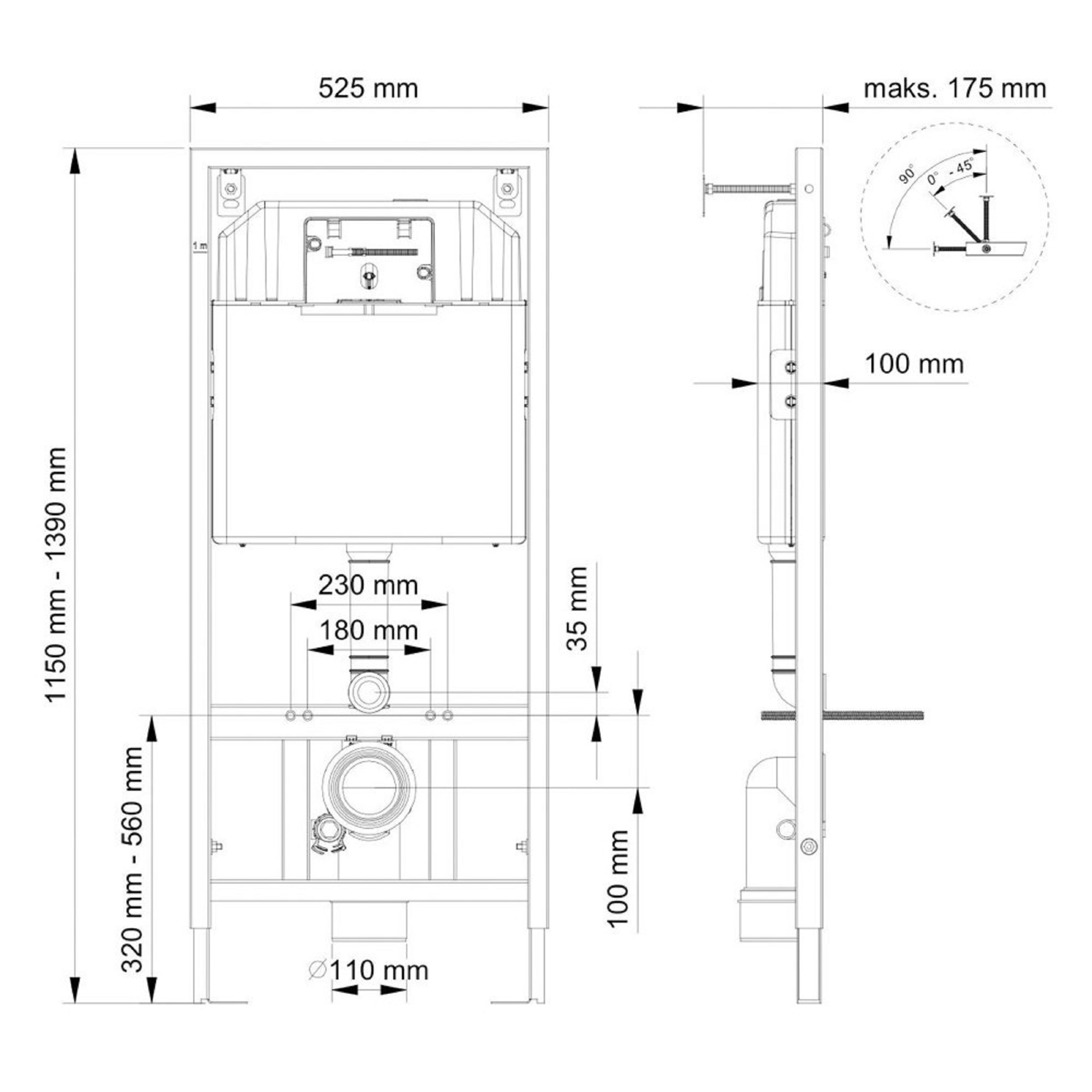 WC-Komplettset Hänge Wand WC mit Spülkasten, Vorwandelement, Schallschutz und BetätigungsplatteProduktinfoDieses Hänge-Wand-WC Modell besticht durch sein klassisch zeitloses Design und hohe Funktionalität. Das bereits bewährte Konzept dieses Modells wurde seit Jahren getestet und hat sich stets aufs Neue bewiesen. Der äußerst stabile Aufbau besteht aus hochwertiger und qualitativer Sanitärkeramik, welche kratz- und schlagfest ist. Dank der praktischen Ausführung ist ein angenehmer Sitzkomfort geboten.Technische Daten:ToiletteModell: Hänge-WCMaterial: KeramikGewicht: Ca. 20 kgFarbe: WeißVorwandelementBauhöhe: 1150-1390 mmBreite: 525 mmBautiefe: Max. 175 mm (verstellbar)Befestigungsabstand: 180 mm oder 230 mmTanktiefe: 80 mmAbflussvolumen: 3/6 L.Wassertankinhalt: 10 L max.Akustikklasse: (1. Klasse) EN 14124 EinlassventilWasserdurchflussdruck: 0,3 MPa (3 bar) / max. Volumen: 9,0 dB, Durchflussrate: 9 l / minImpact Copolymer Spezial PP Körper. (Hohe Schlag- und Wärmeschockbeständigkeit)Styropor-Isolierung vor dem Körper für ein besseres Schallniveau und zur Verhinderung von Kondensation.Traglast: Max. 400 kgDeckelTyp: Soft-Close-Deckel Farbe: WeißLieferumfang:ToiletteVorwandelementUnterputz-SpülkastenSoft-Close-DeckelBetätigungsplatteHinweis:Dieser Artikel wird in mehreren Paketen versendet!Bei allen Maßen handelt es sich um ca.-Angaben!